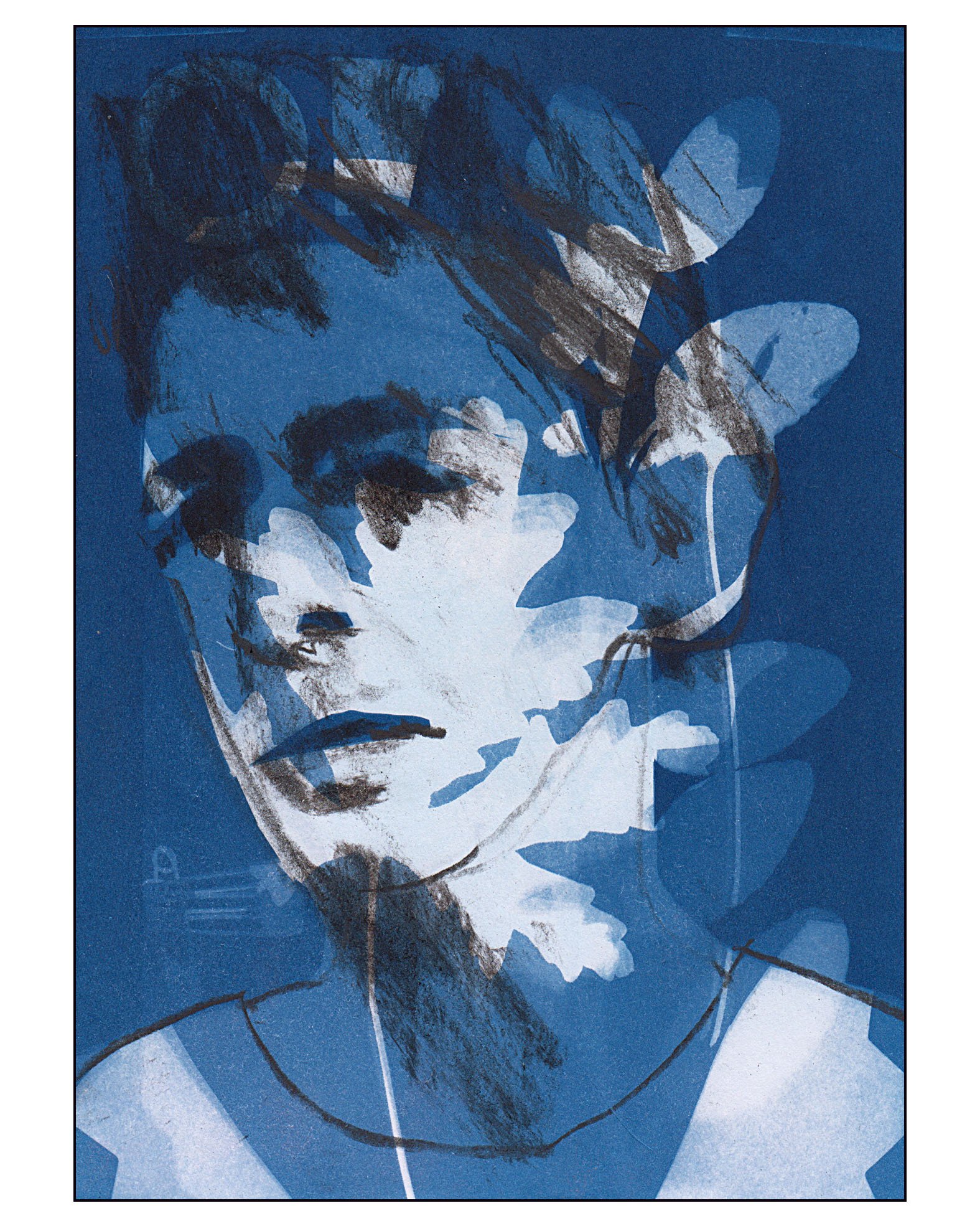 Cyanotype print with charcoal on 150gsm paper.